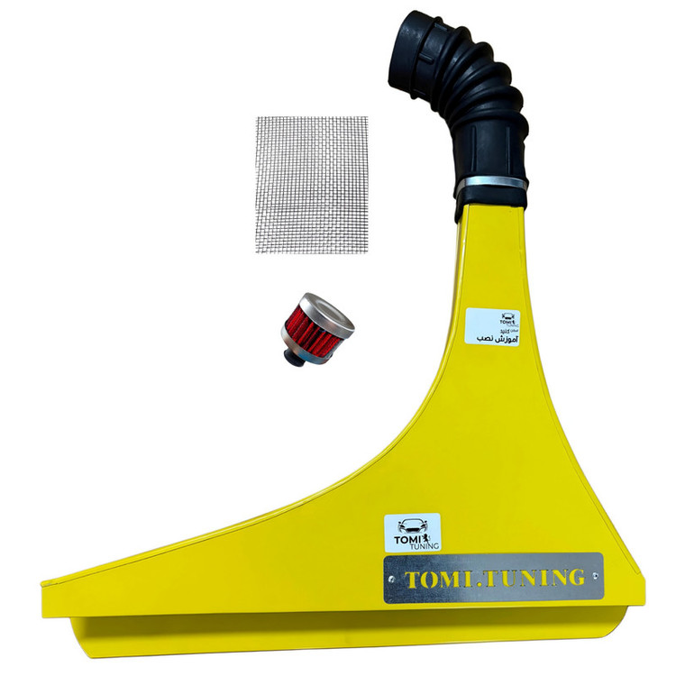 🔱رم ایر دارای فیلتر توری فلزی میباشد🔱 در هنگام نصب در مدل خودرو های مختلف نیاز است با تغییر زاویه زانویی نصب بهتری انجام دهید) . ( در صورت کوتاه بودن زانو هنگام نصب باید قسمت کوتاه را جابجا کرد و قسمت کوتاه را به دهنه رم ایر نصب کرد و قسمت بلند تر زانو را به دهنه دریچه گاز ) . ( اگر در هنگام نصب با کجی مواجه شدید بست فلزی را شل کرده و زانویی را عقب تر یا جلو تر بکشید ) . ( به عکس نمونه های نصبی توجه کنید بخصوص نوع بستن زانویی و تغییر ان در خودرو های مختلف ) . ( برای محکم کرد و مهار تکان های رم ایر لبه جلوی رم ایر را به وسیله پیچ مته ایی پیچ کنید ) . ( نکته خیلی مهم : در صورتی که زانویی را باز کردید فیلتر فلزی را دوباره بصورت صحیح سر جای خود قرار دهید ) . ( رنگ کوره ایی و نسوز است ) . [ دارای فیلتر سیمی توری فلزی ] . ( رم ایر به در بعضی از مدل خودرو ها که به نظر میرسد به کاپوت گیر میکنددر واقع هیچ گیر و ارتباطی ندارد و خطای چشمی است ) . ( در هنگام بارندگی هیچگونه ابی به داخل نمیکشد مگر اینکه وارد حجم زیادی از اب مثل چاله بزرگ اب شوید که تا روی کاپوت اب بیاید )