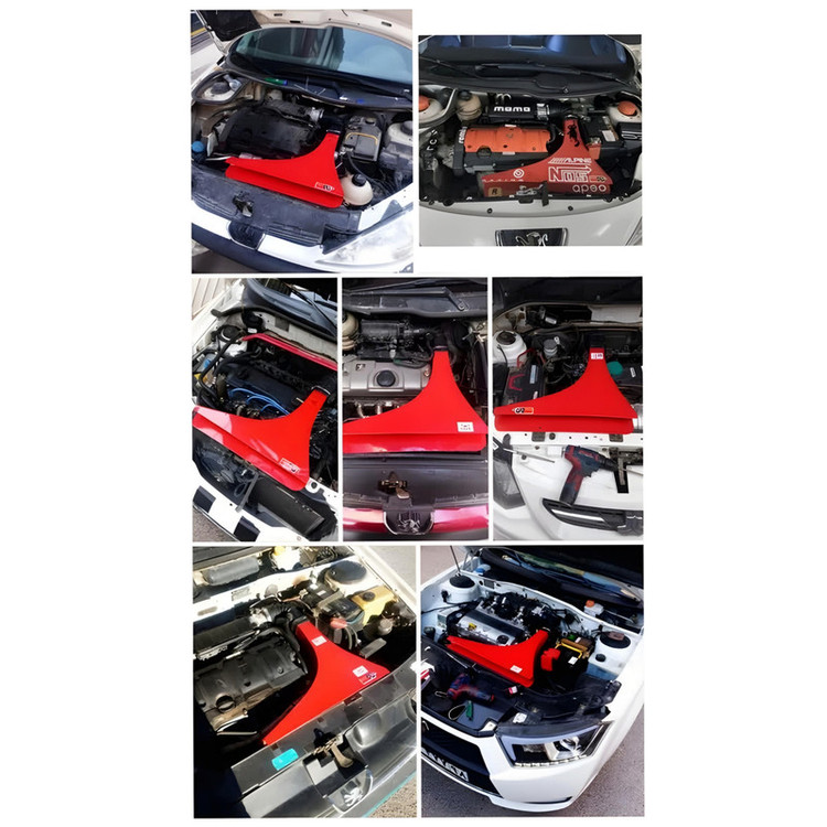 ( در هنگام نصب در مدل خودرو های مختلف نیاز است با تغییر زاویه زانویی نصب بهتری انجام دهید) . ( در صورت کوتاه بودن زانو هنگام نصب باید قسمت کوتاه را جابجا کرد و قسمت کوتاه را به دهنه رم ایر نصب کرد و قسمت بلند تر زانو را به دهنه دریچه گاز ) . ( اگر در هنگام نصب با کجی مواجه شدید بست فلزی را شل کرده و زانویی را عقب تر یا جلو تر بکشید ) . ( به عکس نمونه های نصبی توجه کنید بخصوص نوع بستن زانویی و تغییر ان در خودرو های مختلف ) . ( برای محکم کرد و مهار تکان های رم ایر لبه جلوی رم ایر را به وسیله پیچ مته ایی پیچ کنید ) . ( نکته خیلی مهم : در صورتی که زانویی را باز کردید فیلتر فلزی را دوباره بصورت صحیح سر جای خود قرار دهید ) . ( رنگ کوره ایی و نسوز است ) . [ دارای فیلتر سیمی توری فلزی ] . ( رم ایر به در بعضی از مدل خودرو ها که به نظر میرسد به کاپوت گیر میکنددر واقع هیچ گیر و ارتباطی ندارد و خطای چشمی است ) . ( در هنگام بارندگی هیچگونه ابی به داخل نمیکشد مگر اینکه وارد حجم زیادی از اب مثل چاله بزرگ اب شوید که تا روی کاپوت اب بیاید )
