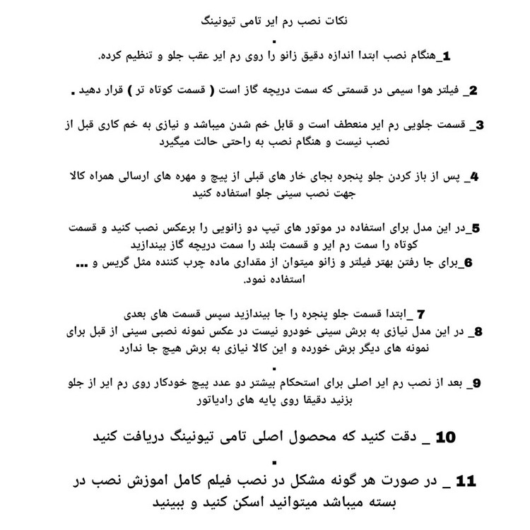 توضیحات مدل خودرو: مناسب 206 . Tu5 و tu3